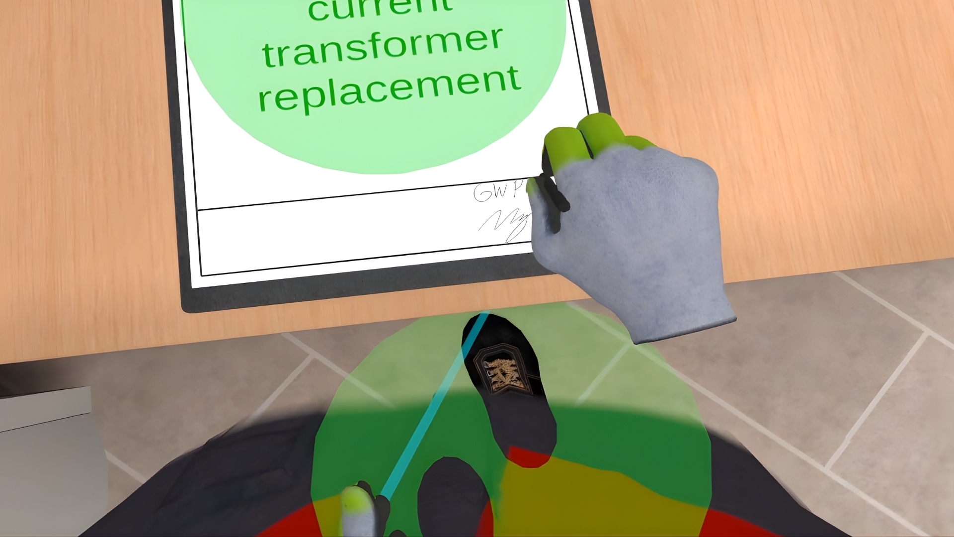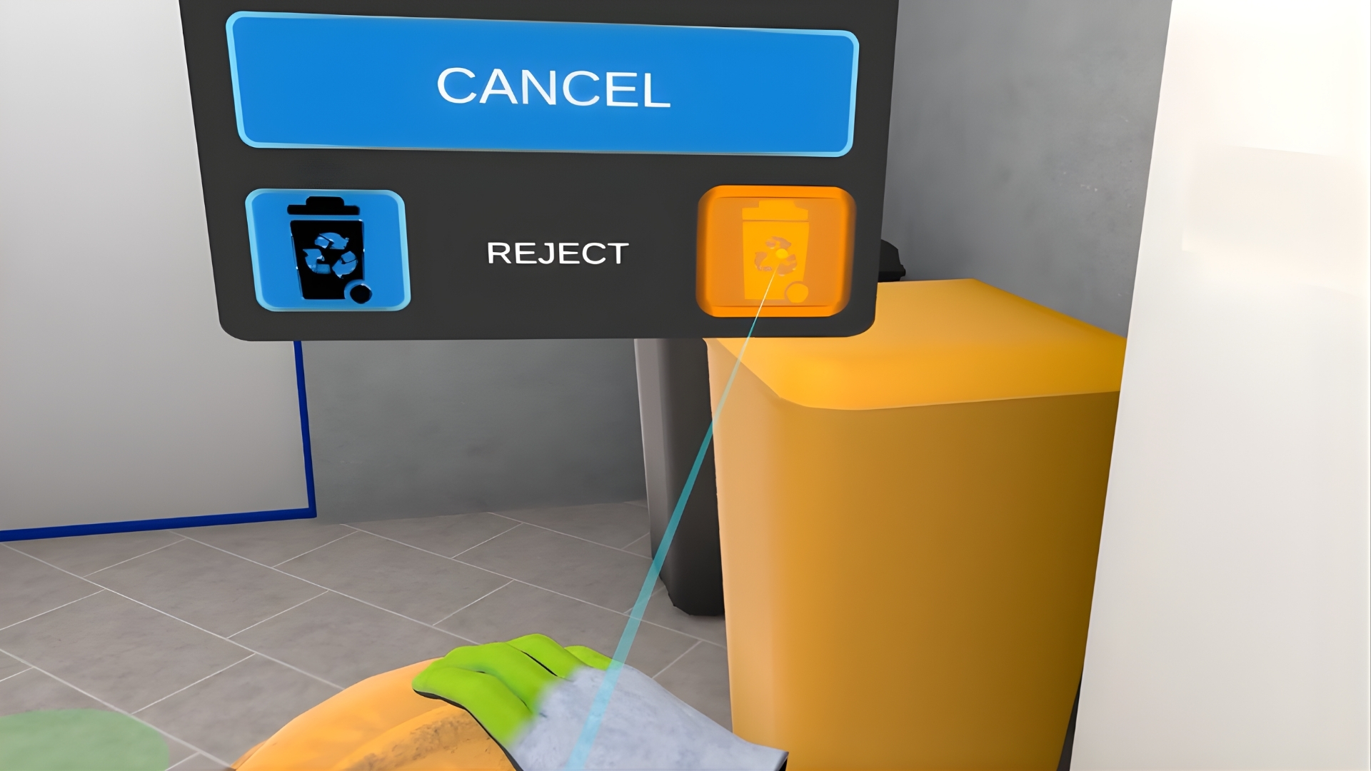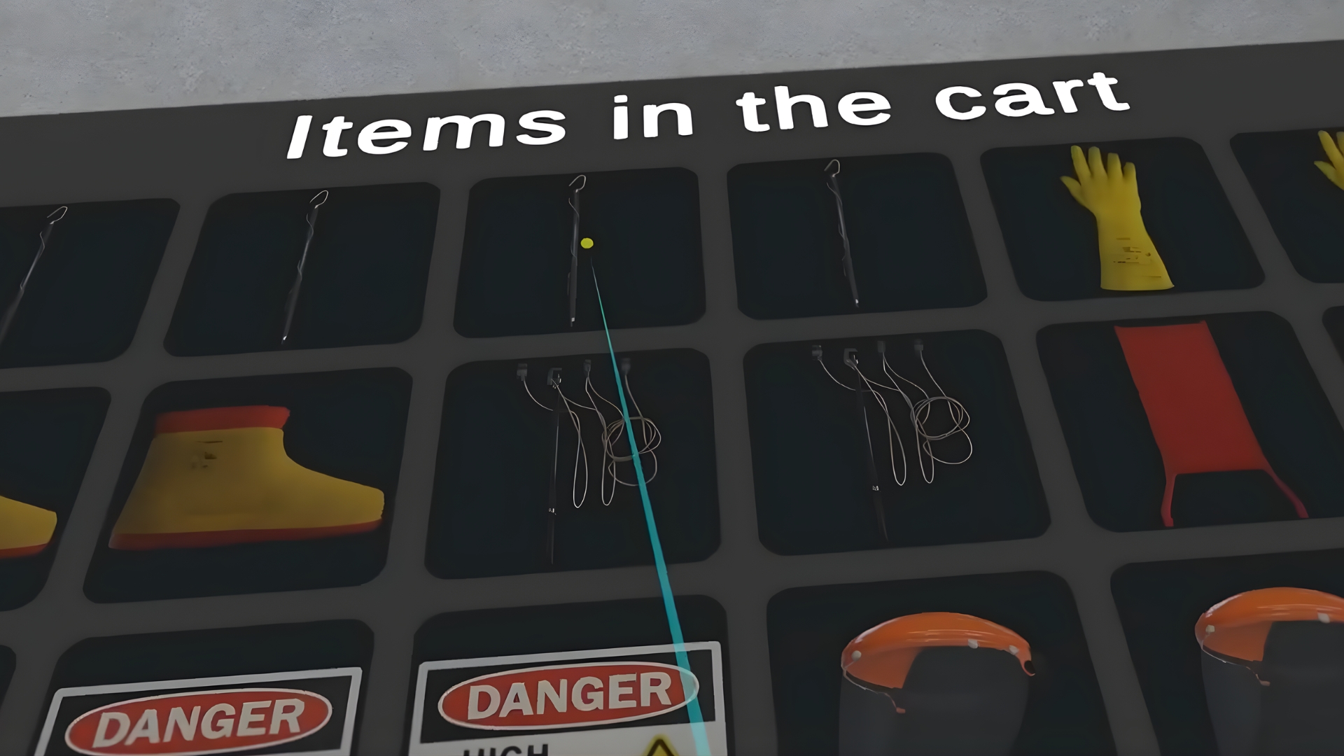 The VR Training includes checking basic PPEs, declining the damaged ones, understanding of the checking process, dividing the PPEs into the ones that you are wearing now and the ones that you should bring to your workplace.